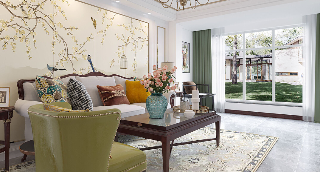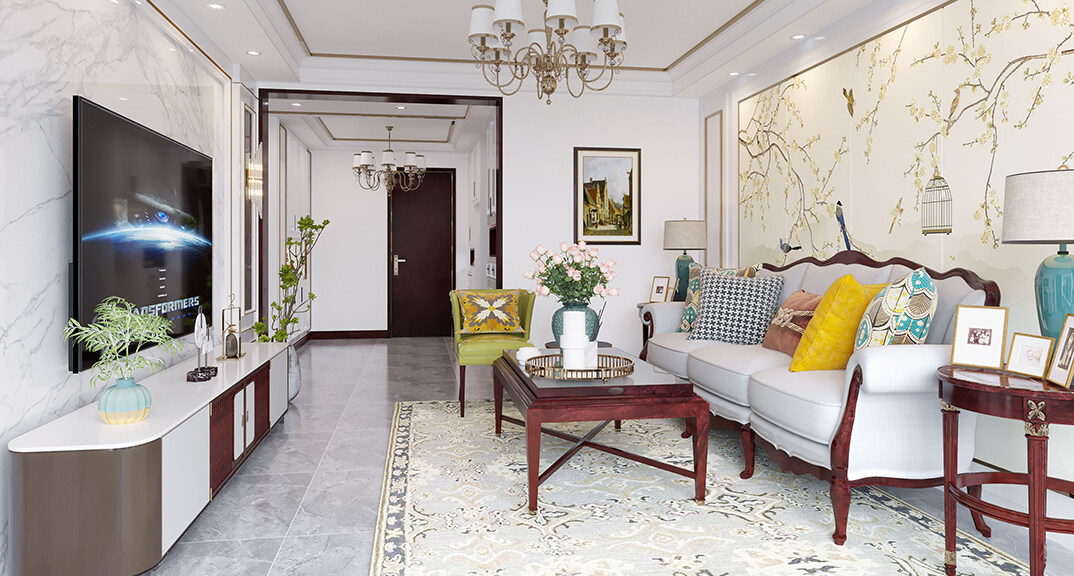 北苑風(fēng)景130㎡兩室兩廳客廳美式風(fēng)格裝修案例效果圖