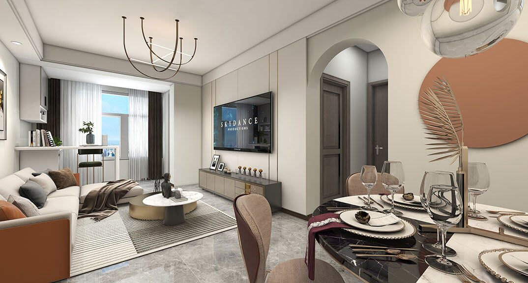 金地·錦宸95㎡二室一廳客廳現(xiàn)代簡(jiǎn)約風(fēng)格戶型研發(fā)案例效果圖