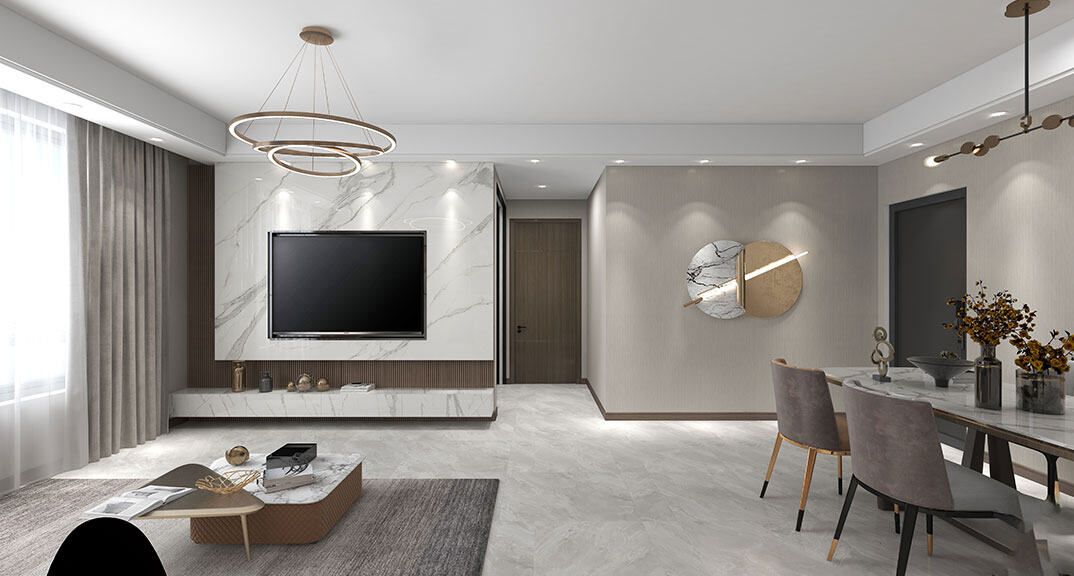 金地·錦宸110㎡三室一廳客餐廳現(xiàn)代簡約風(fēng)格戶型研發(fā)案例效果圖