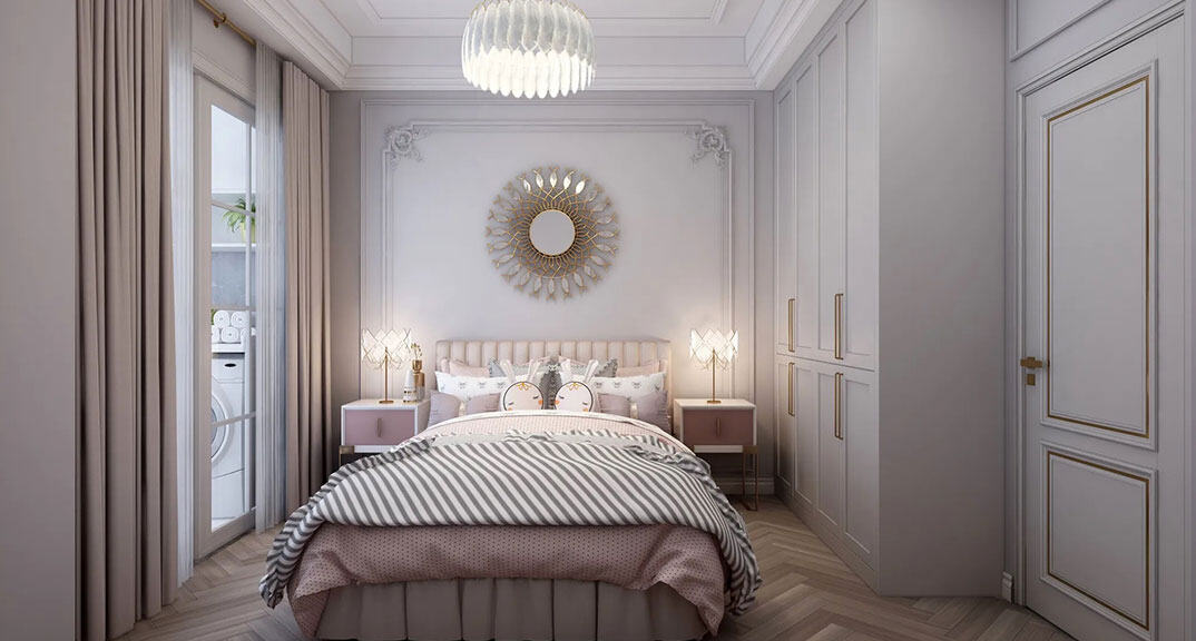 御苑小區(qū)137㎡三室二廳臥室法式輕奢風格裝修案例效果圖