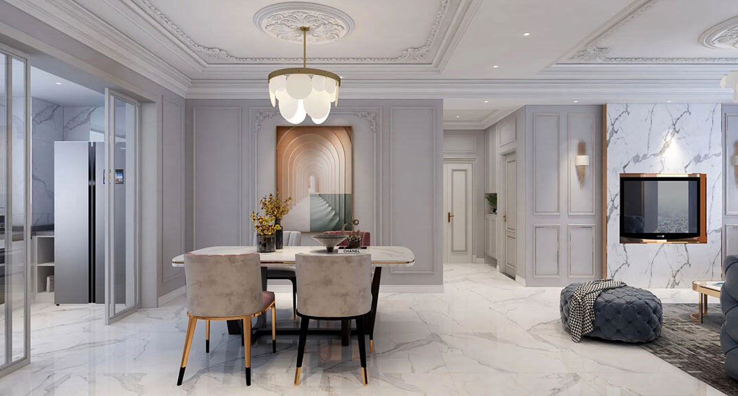 御苑小區(qū)137㎡三室二廳餐廳法式輕奢風格裝修案例效果圖