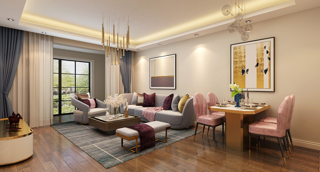 海爾產(chǎn)城創(chuàng)鼎世華府90㎡兩室兩廳客餐廳現(xiàn)代風(fēng)格裝修案例效果圖