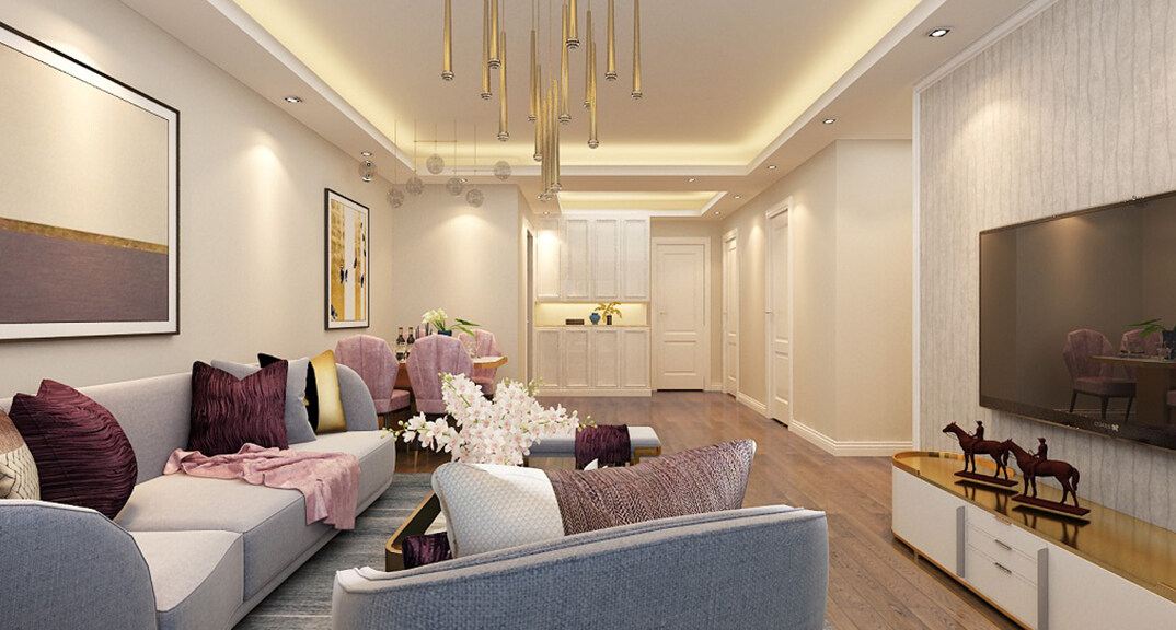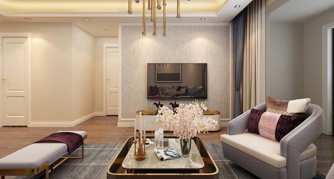 海爾產(chǎn)城創(chuàng)鼎世華府90㎡兩室兩廳客廳現(xiàn)代風(fēng)格裝修案例效果圖