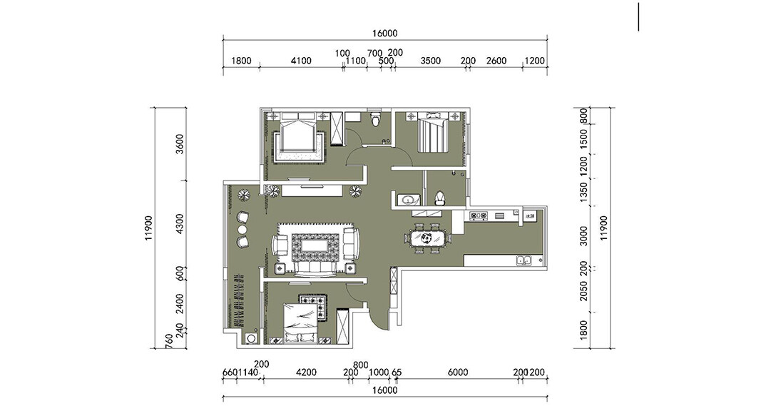 市直三區(qū)150㎡三室兩廳戶型平面布局圖