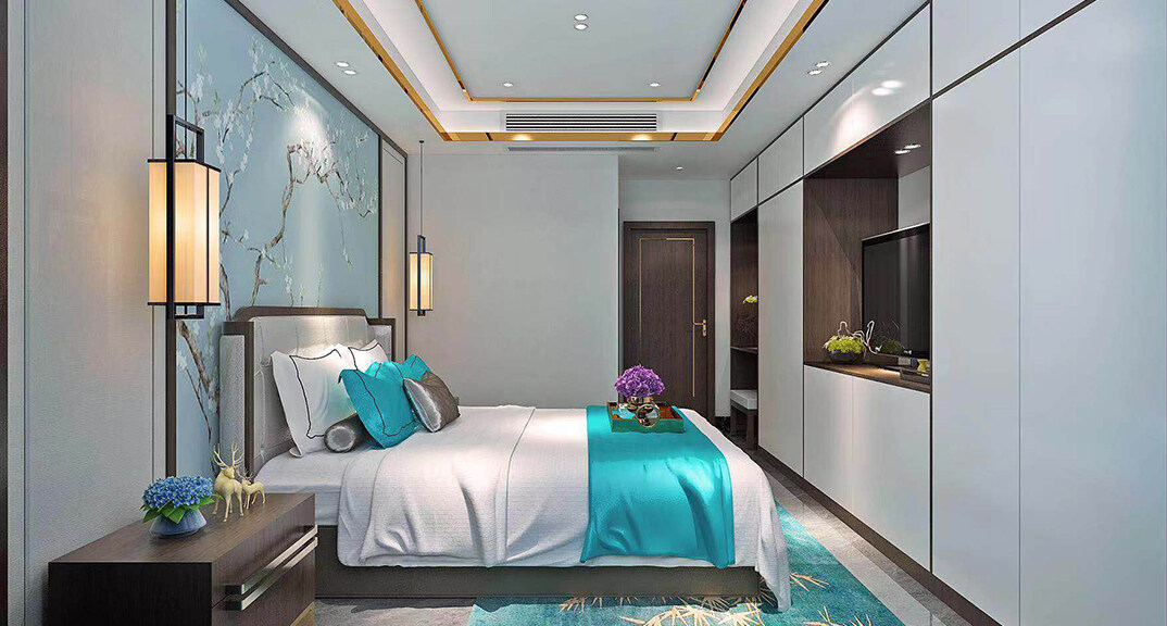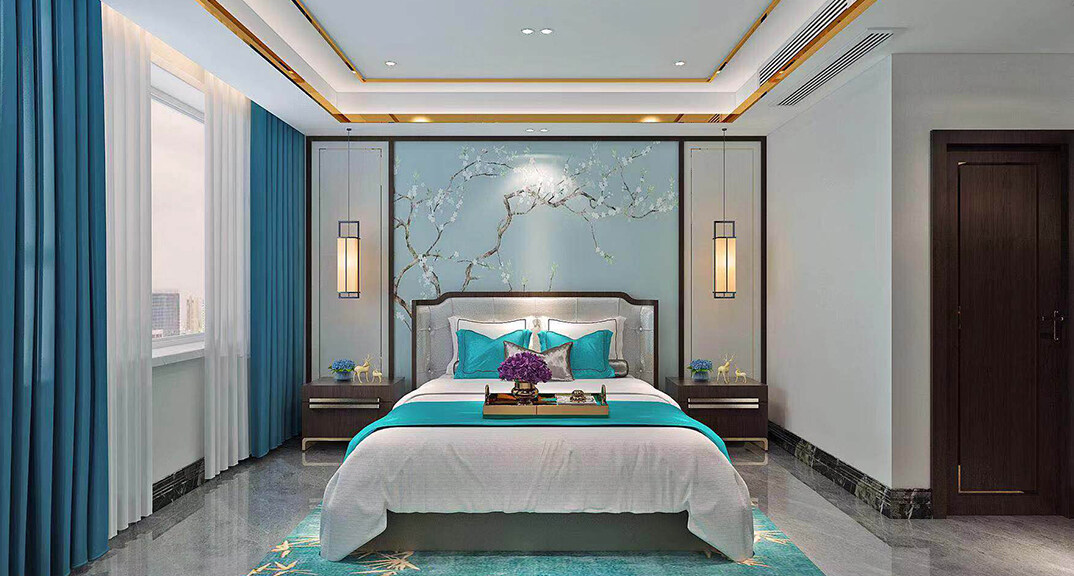 市直三區(qū)150㎡三室兩廳臥室新中式風格裝修案例效果圖