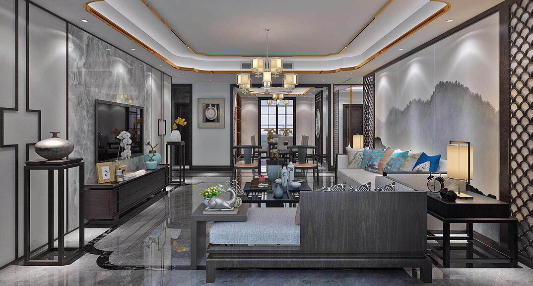 市直三區(qū)150㎡三室兩廳客廳新中式風格裝修案例效果圖