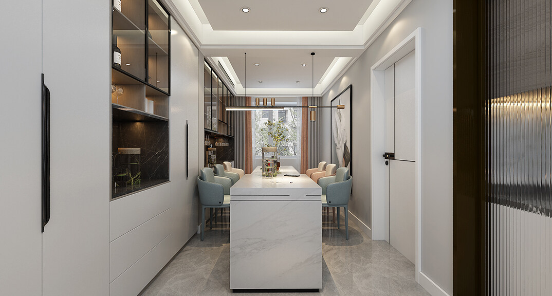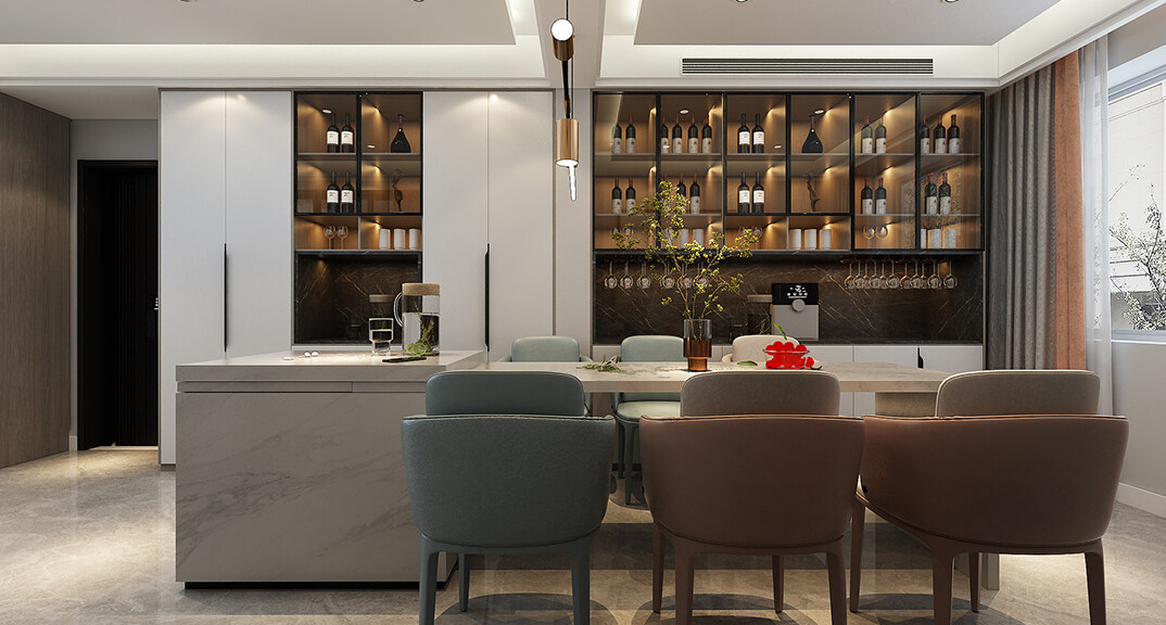 中海藍(lán)庭106㎡三室兩廳餐廳輕奢風(fēng)格裝修案例效果圖
