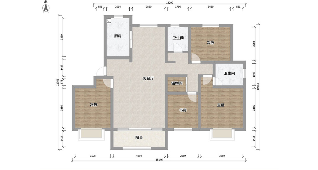桂花園132㎡三室兩廳陽臺(tái)現(xiàn)代簡(jiǎn)約風(fēng)格裝修案例效果圖