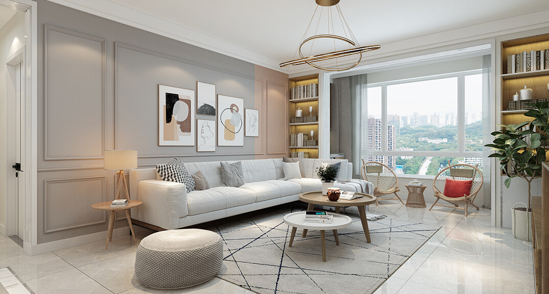 桂花園132㎡三室兩廳客廳沙發(fā)現(xiàn)代簡(jiǎn)約風(fēng)格裝修案例效果圖