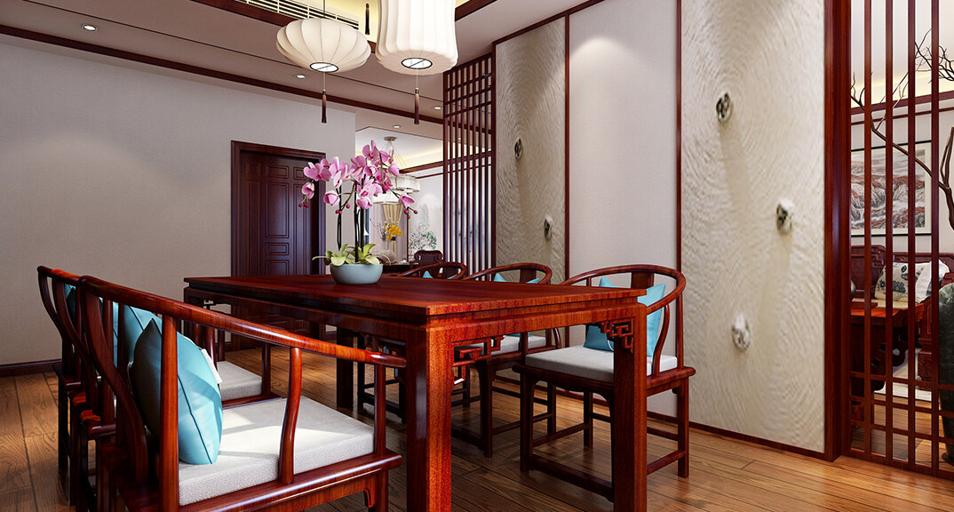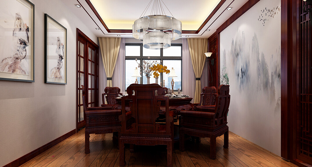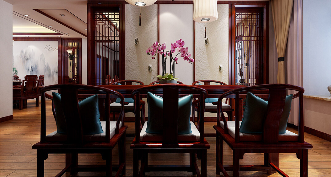 城投尚城桂花園190㎡三室兩廳餐廳傳統(tǒng)中式風格裝修案例效果圖