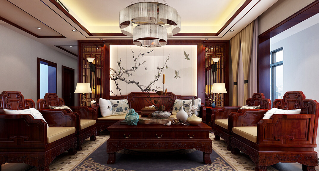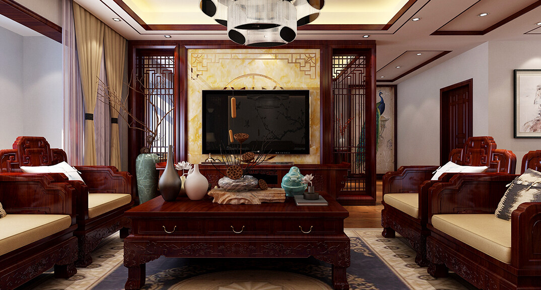 城投尚城桂花園190㎡三室兩廳客廳沙發(fā)傳統(tǒng)中式風格裝修案例效果圖