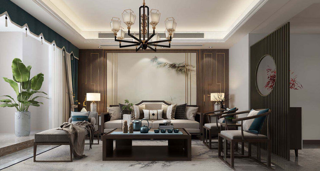 永麗花園158㎡三室兩廳客廳新中式風(fēng)格裝修案例效果圖