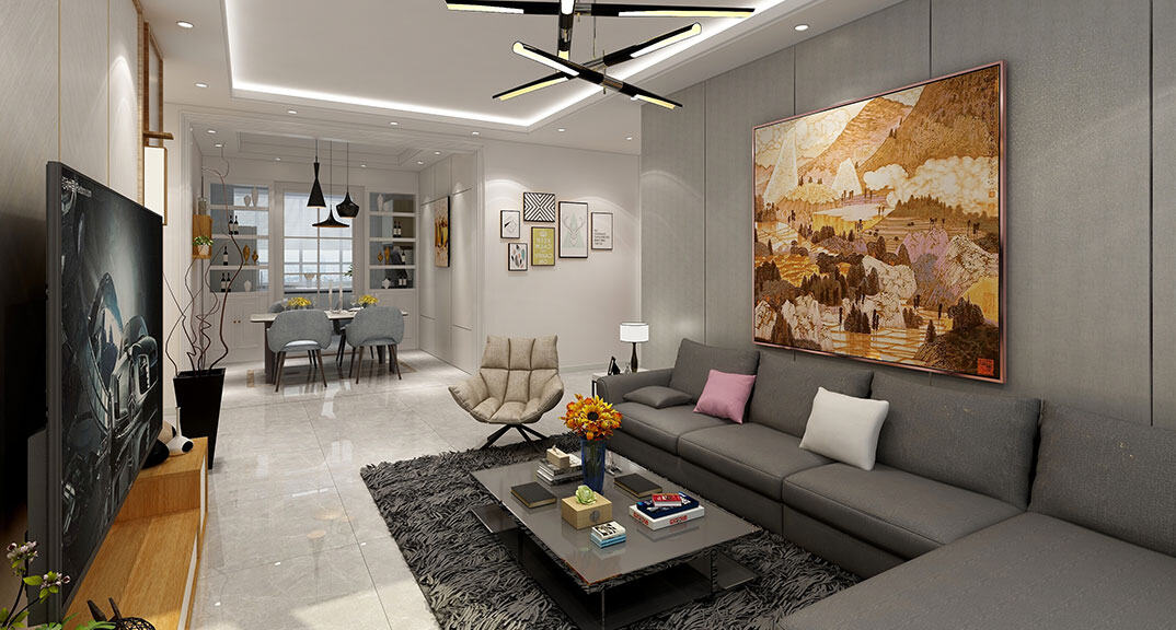 依云四季118㎡三室兩廳客廳現(xiàn)代簡約風格戶型研發(fā)案例效果圖