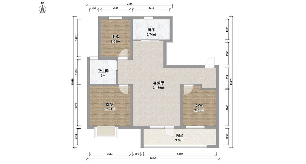 依云四季108㎡三室兩廳戶(hù)型平面布局圖