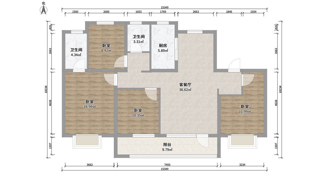 依云四季118㎡三室兩廳戶(hù)型平面布局圖