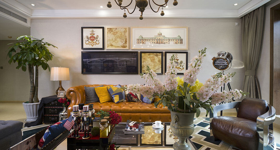 依云四季118㎡三室兩廳客廳美式風(fēng)格研發(fā)案例效果圖