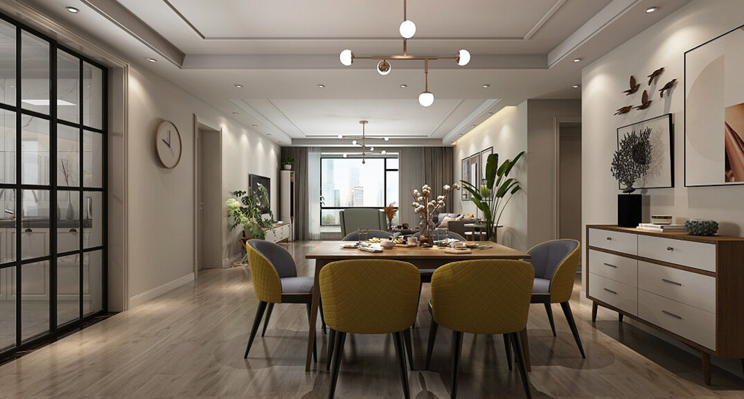 海信半山蘭亭116㎡三室兩廳客餐廳現(xiàn)代簡約風(fēng)格裝修案例效果圖