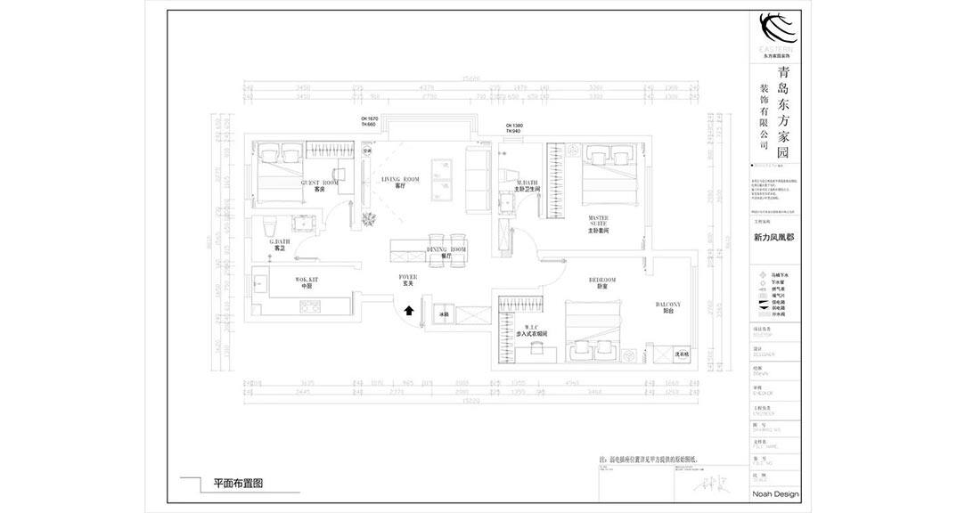 鳳凰郡115㎡三室兩廳戶(hù)型平面布局圖