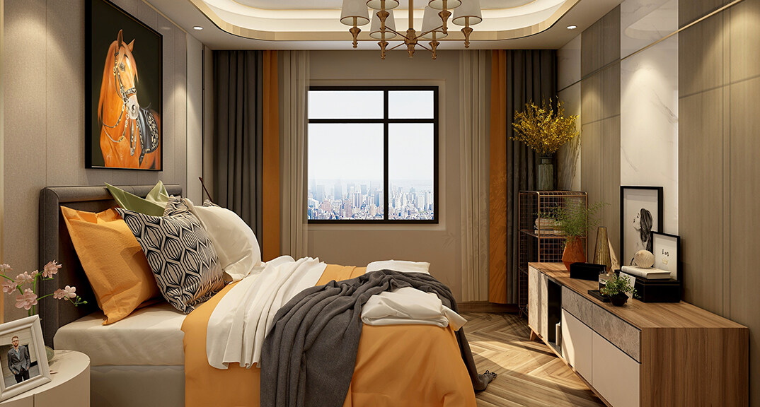 青特星城119㎡三室兩廳主臥現(xiàn)代風(fēng)格裝修案例效果圖