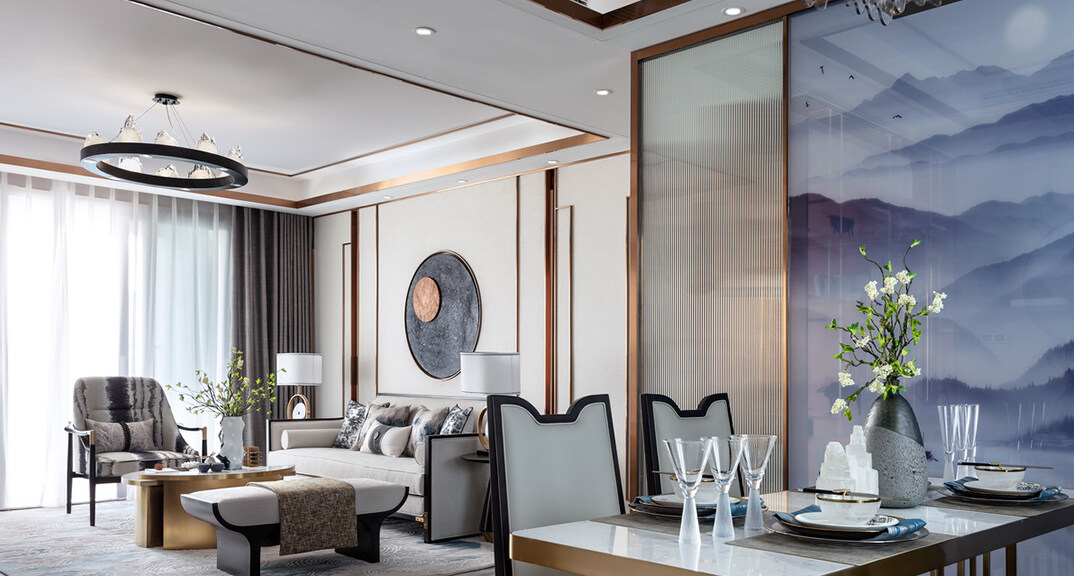 青特星城119㎡三室兩廳客餐廳新中式風(fēng)格裝修案例效果圖