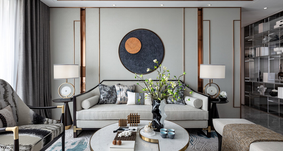 青特星城119㎡三室兩廳客廳新中式風(fēng)格裝修案例效果圖
