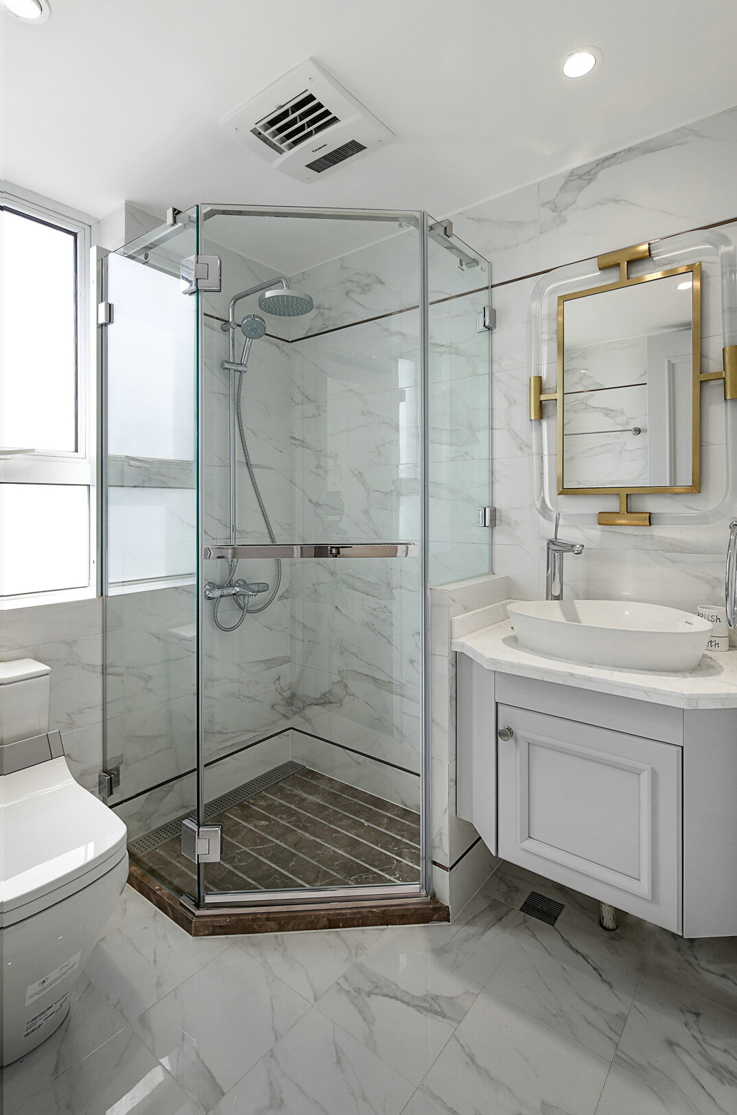 青特星城113㎡三室兩廳衛(wèi)生間美式風(fēng)格裝修案例效果圖