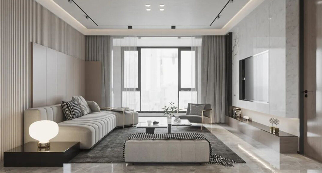 華僑府邸180㎡三室兩廳客廳沙發(fā)現(xiàn)代輕奢風(fēng)格裝修案例效果圖