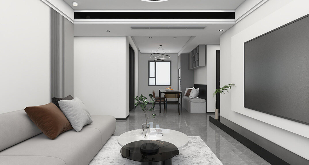 下崖社區(qū)112㎡三室兩廳客廳極簡風(fēng)格裝修案例效果圖