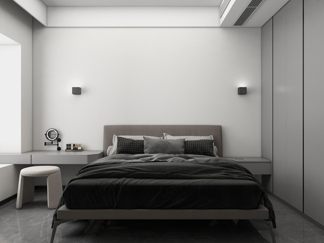 下崖社區(qū)112㎡三室兩廳主臥極簡風(fēng)格裝修案例效果圖