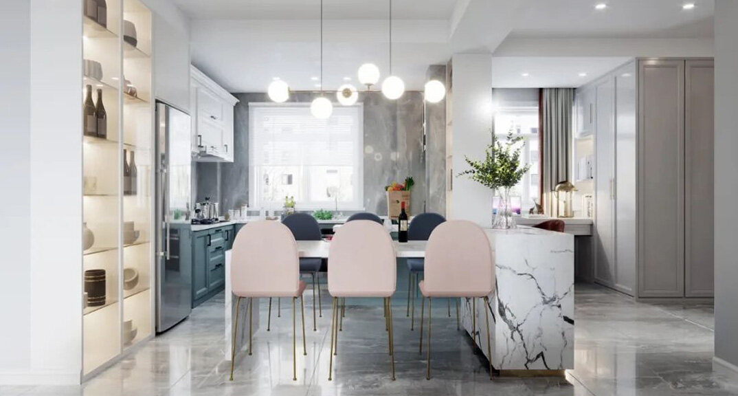凱萊花園180㎡復(fù)式餐廳廚房法式輕奢風(fēng)格裝修案例效果圖