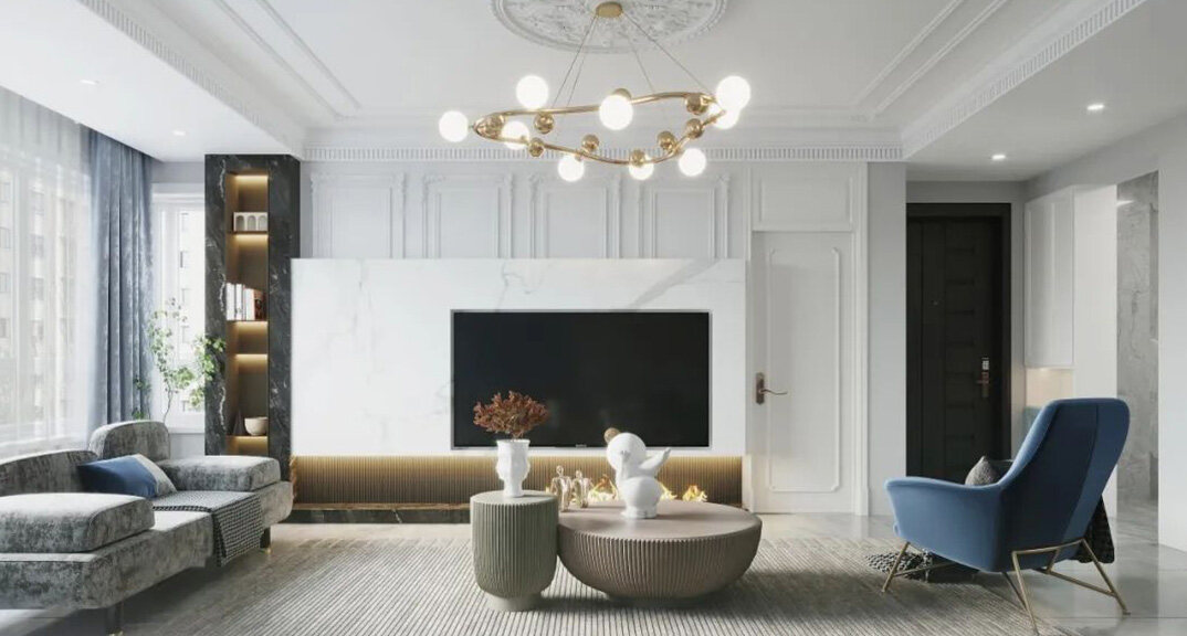 凱萊花園180㎡復(fù)式客廳電視法式輕奢風(fēng)格裝修案例效果圖
