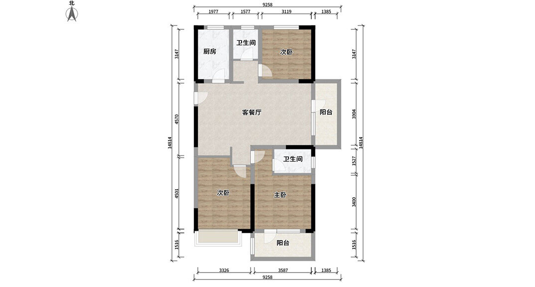 融?!ぶ逻h(yuǎn)居120㎡三室兩廳戶型平面布局圖