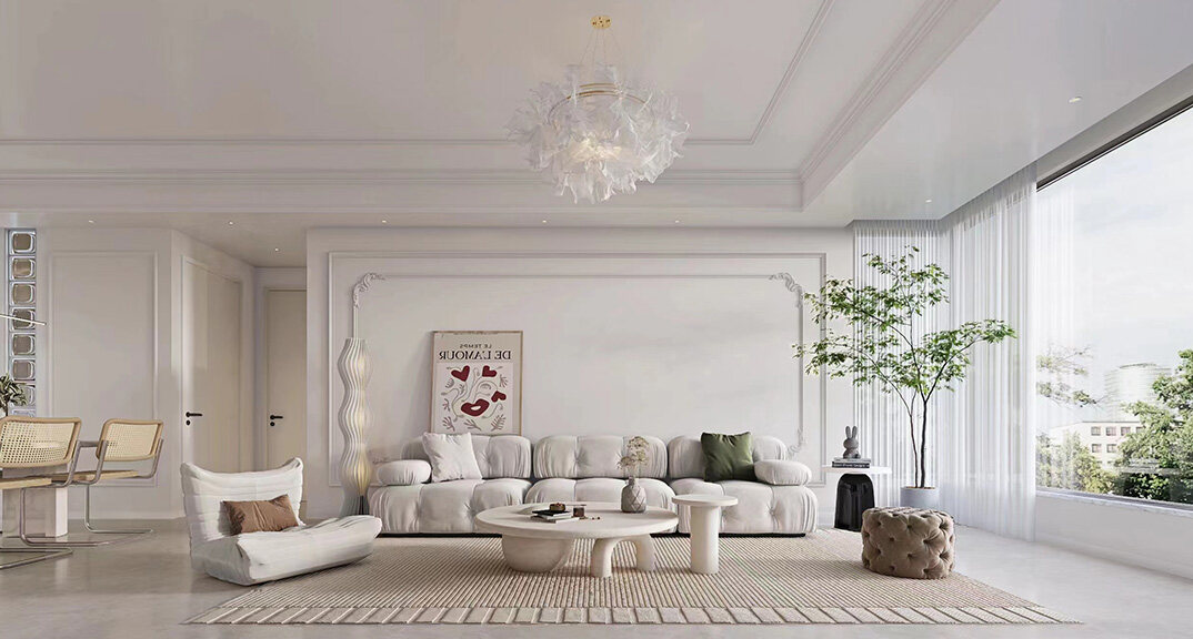 融海·致遠(yuǎn)居120㎡三室兩廳客廳沙發(fā)俯視現(xiàn)代風(fēng)格裝修案例效果圖