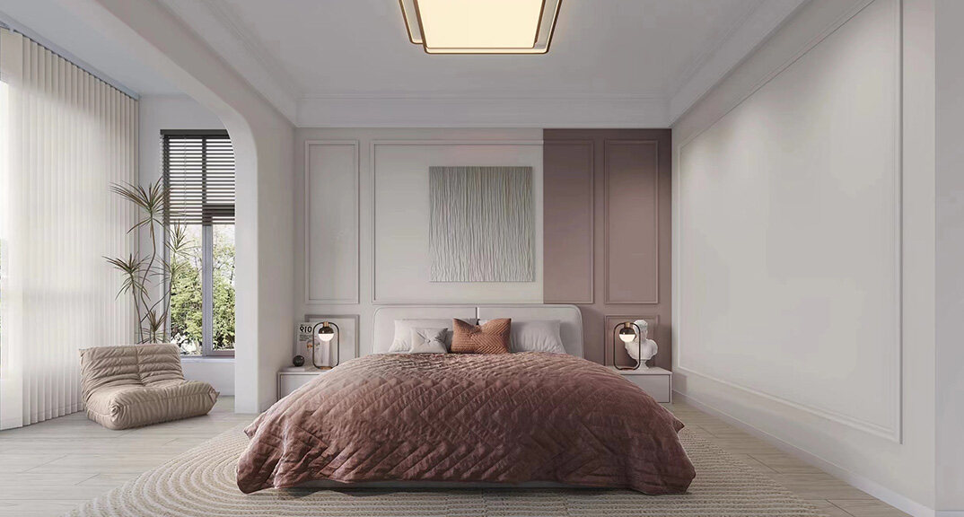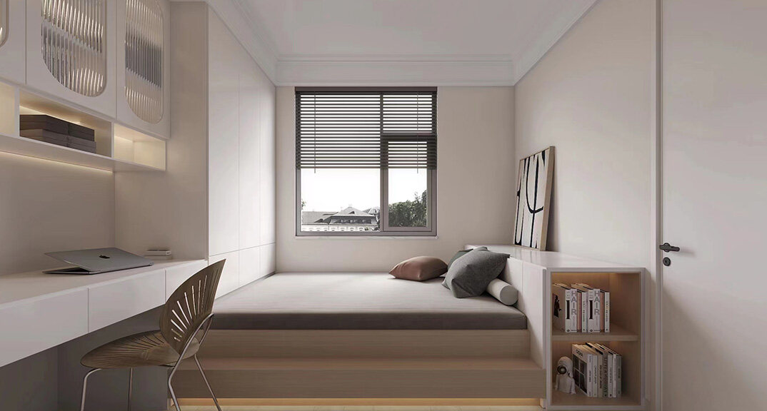 融?!ぶ逻h(yuǎn)居120㎡三室兩廳臥室俯視現(xiàn)代風(fēng)格裝修案例效果圖