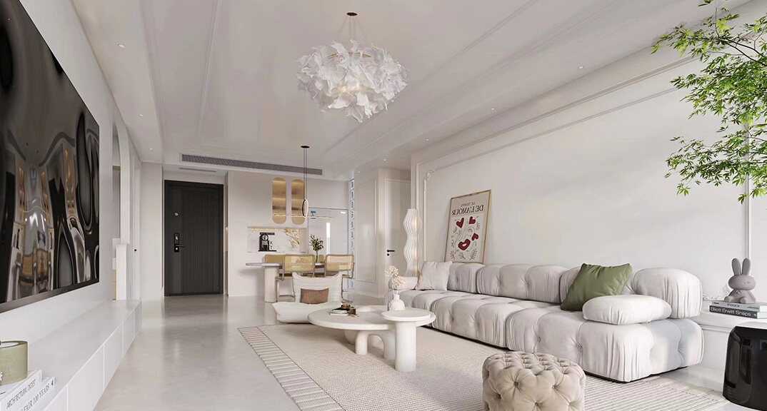 融海·致遠(yuǎn)居120㎡三室兩廳客廳俯視現(xiàn)代風(fēng)格裝修案例效果圖