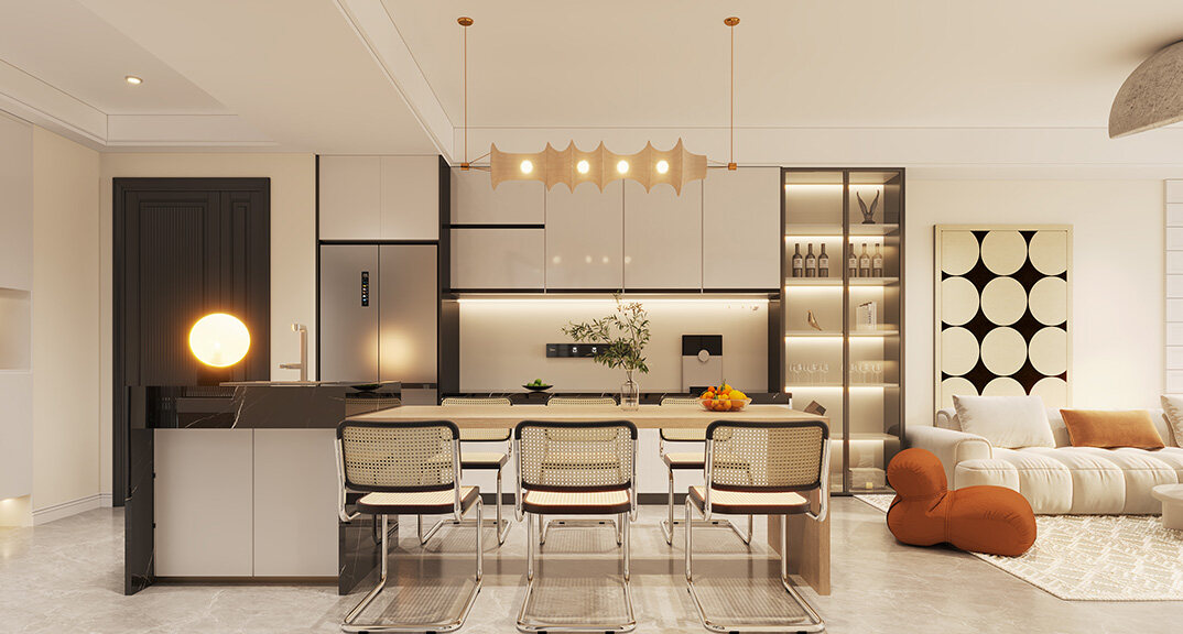 遠(yuǎn)洋萬(wàn)和公館122㎡三室兩廳餐廳現(xiàn)代風(fēng)格裝修案例效果圖