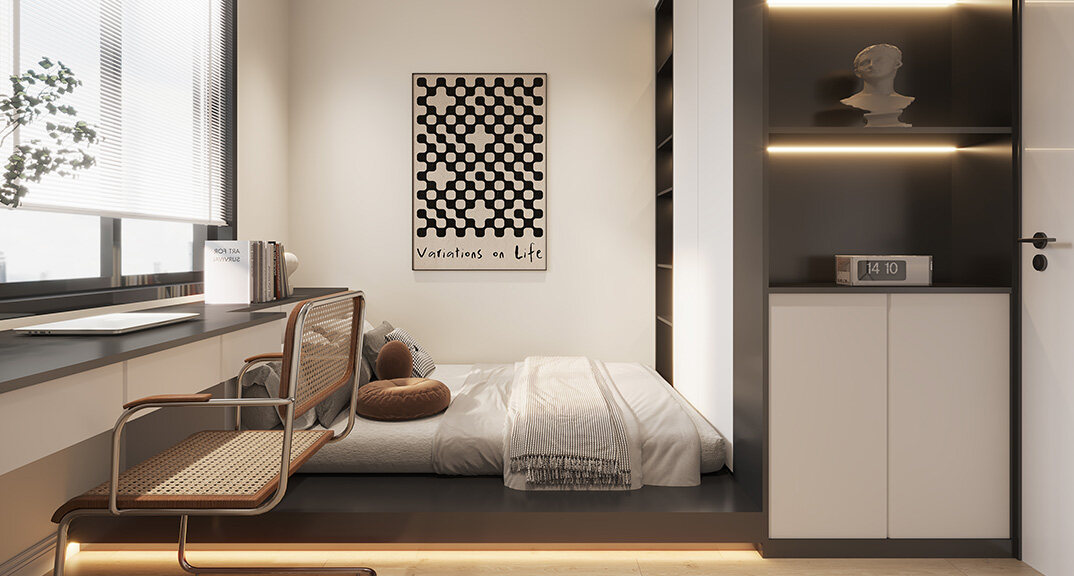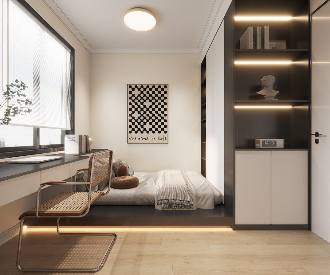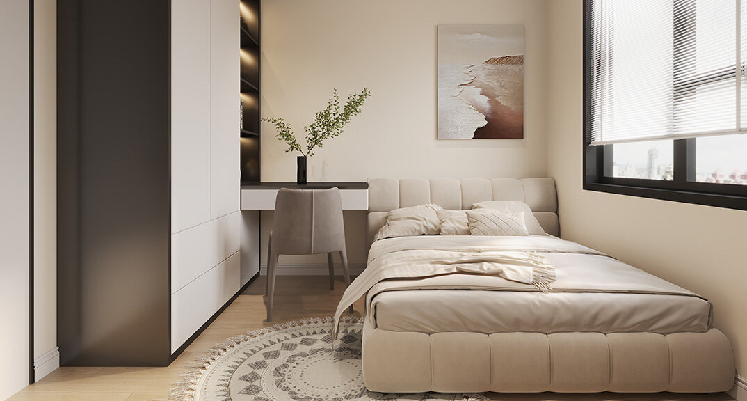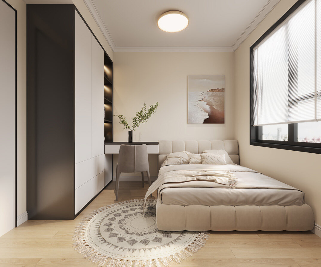 遠(yuǎn)洋萬(wàn)和公館122㎡三室兩廳次臥現(xiàn)代風(fēng)格裝修案例效果圖