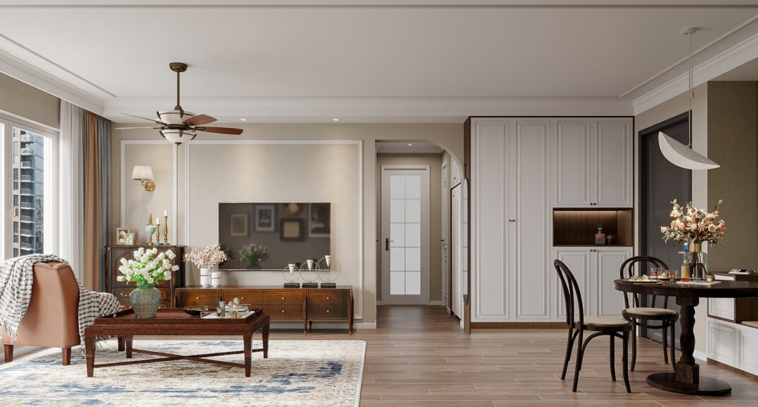 海洋地質(zhì)所120㎡三室兩廳美式風(fēng)格裝修vr全景
