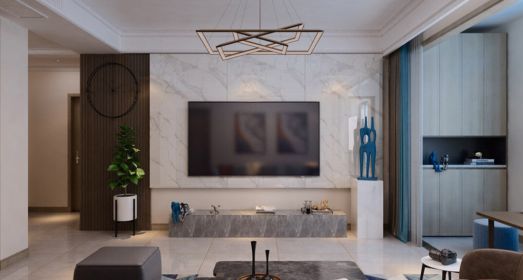 鑫江合院270㎡別墅客廳電視現(xiàn)代風(fēng)格裝修案例效果圖