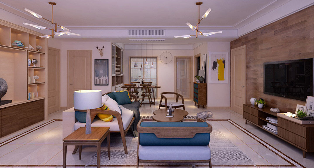 龍湖悠山郡300㎡別墅客餐廳美式風(fēng)格裝修案例效果圖