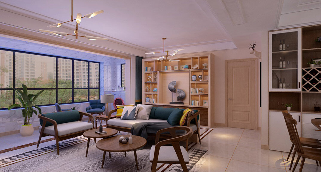龍湖悠山郡300㎡別墅陽臺(tái)美式風(fēng)格裝修案例效果圖