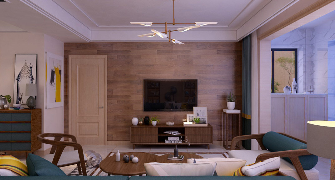 龍湖悠山郡300㎡別墅客廳電視美式風(fēng)格裝修案例效果圖