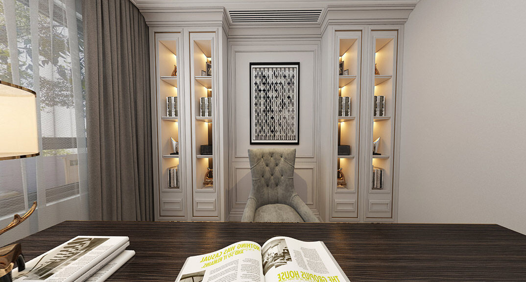 九里風(fēng)華478㎡別墅二樓書房法式風(fēng)格裝修案例效果圖
