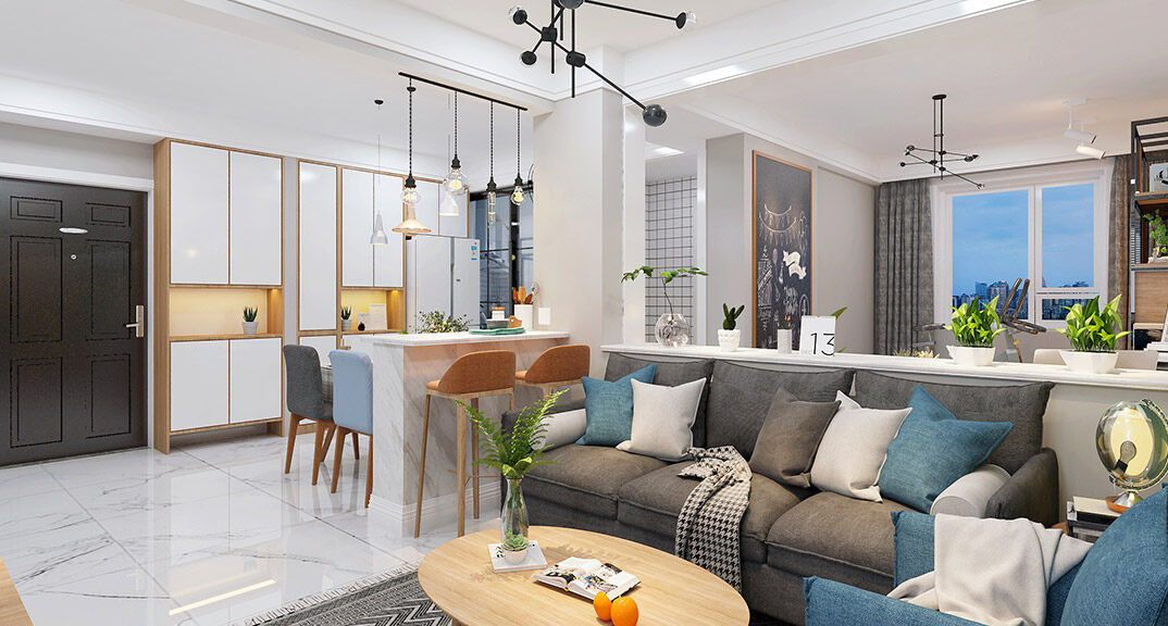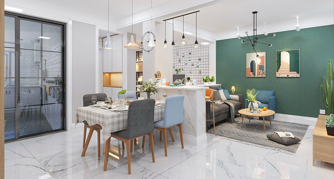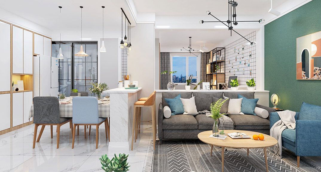萊頓小鎮(zhèn)·瀾???25㎡三室兩廳客餐廳北歐風格裝修案例效果圖