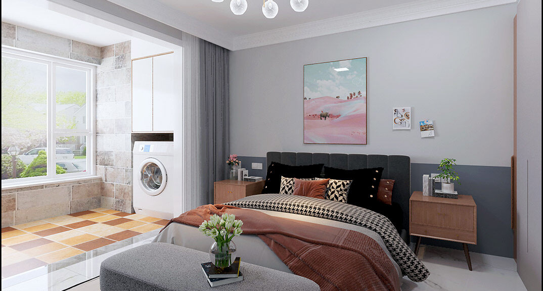 萊頓小鎮(zhèn)·瀾海郡125㎡三室兩廳臥室北歐風格裝修案例效果圖