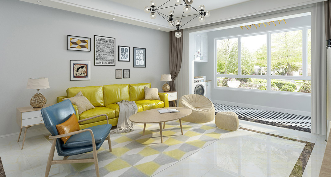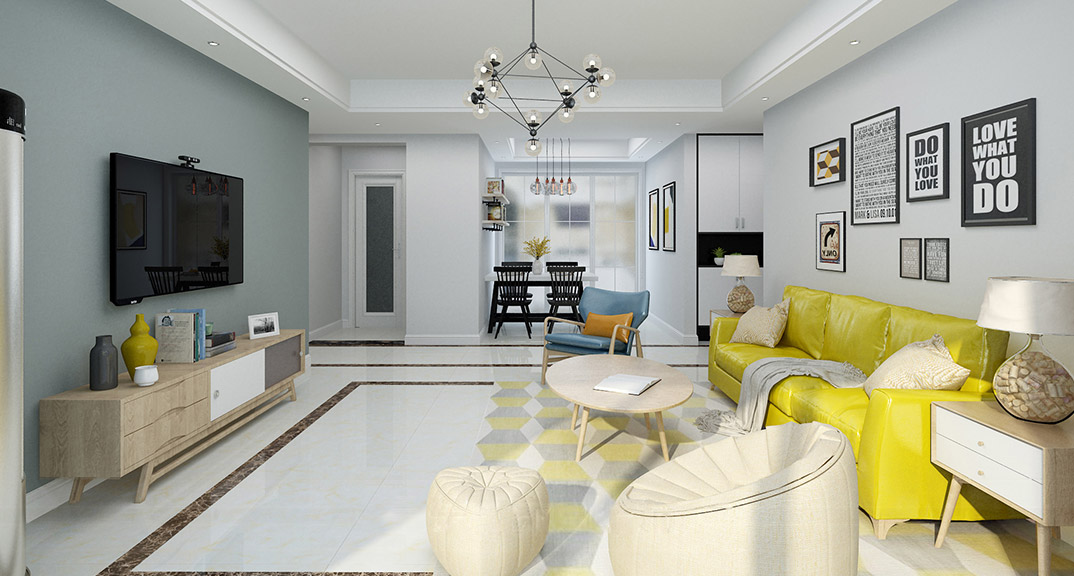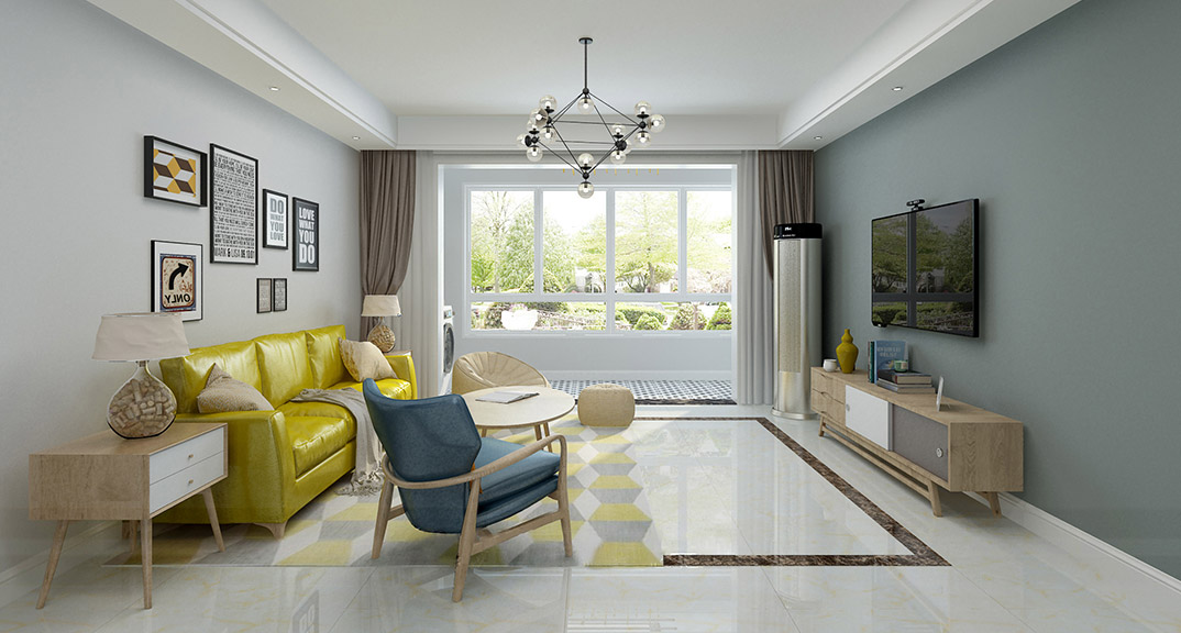永利國際134㎡三室兩廳客廳北歐風格裝修案例效果圖