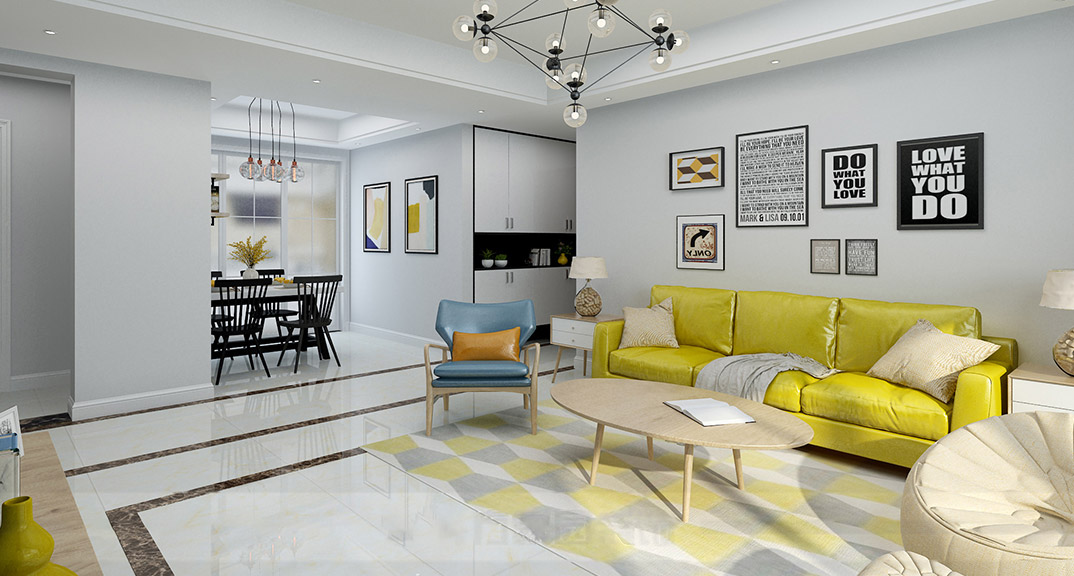 永利國際134㎡三室兩廳客餐廳沙發(fā)北歐風格裝修案例效果圖