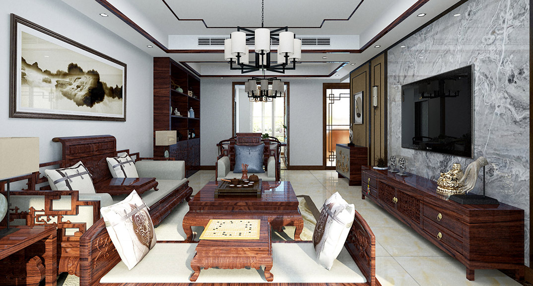 安泰德園142㎡三室兩廳客廳新中式風(fēng)格裝修案例效果圖