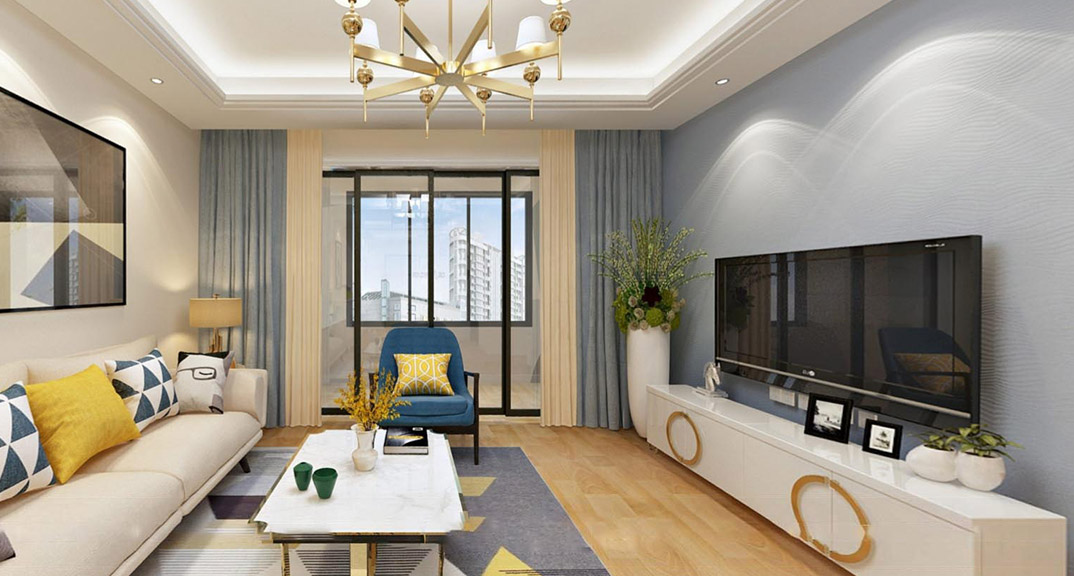 浮來春公館142㎡四室兩廳客廳現(xiàn)代簡約風格裝修案例效果圖