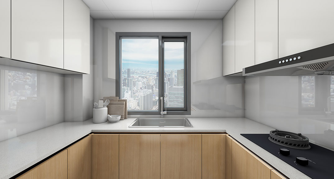 中歐國(guó)際城115㎡三室兩廳廚房原木極簡(jiǎn)風(fēng)格裝修案例效果圖